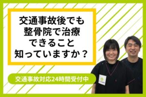 整骨院というと「骨折や捻挫を治すところ」というイメージを持たれる方も多いのですが、交通事故後のむち打ち・筋肉ダメージ・自律神経の乱れといった症状にも、私たちは専門的に対応しています。